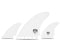 “The TWINZER+ fin setup is a modern performance take on the classic Twinzer fin design, but with an added twist. A TWINZER+ rear stabilizer trailing fin adds more punch, more power, and even more control to a typical Twin, Twinzer, or Twin+ trailer. Like other Twinzers, the forward canard fins extend the base, claw into the wave face, and apply more pressure to the bottom of the board. Because of this, a more upright, narrower-base, lower-area twin is used. We love the current crop of “circumcised,” snip-tip twins currently on the market and created a template based on this fast-reacting tip. To make things flow, the forward canards feature the same tip template and a trailing edge that parallels the leading edge of the main twin, creating a complementary flow.